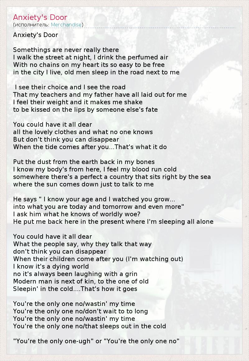 А как ты думаешь, о чем песня "Anxiety's Door" ?