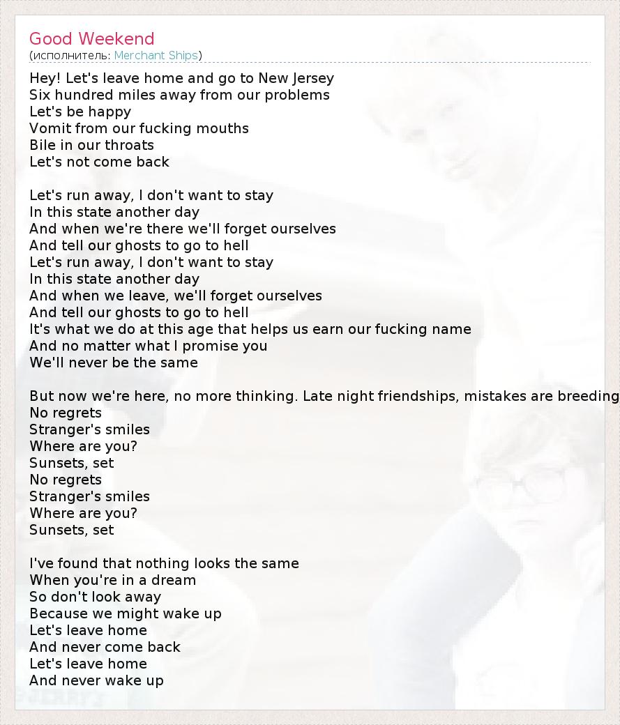 А как ты думаешь, о чем песня "Good Weekend" ?