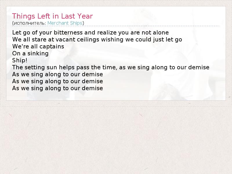 А как ты думаешь, о чем песня "Things Left in Last Year" ?