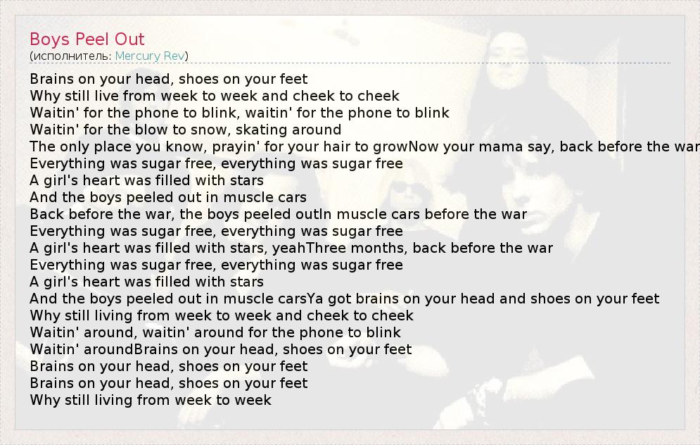 А как ты думаешь, о чем песня "Boys Peel Out" ?