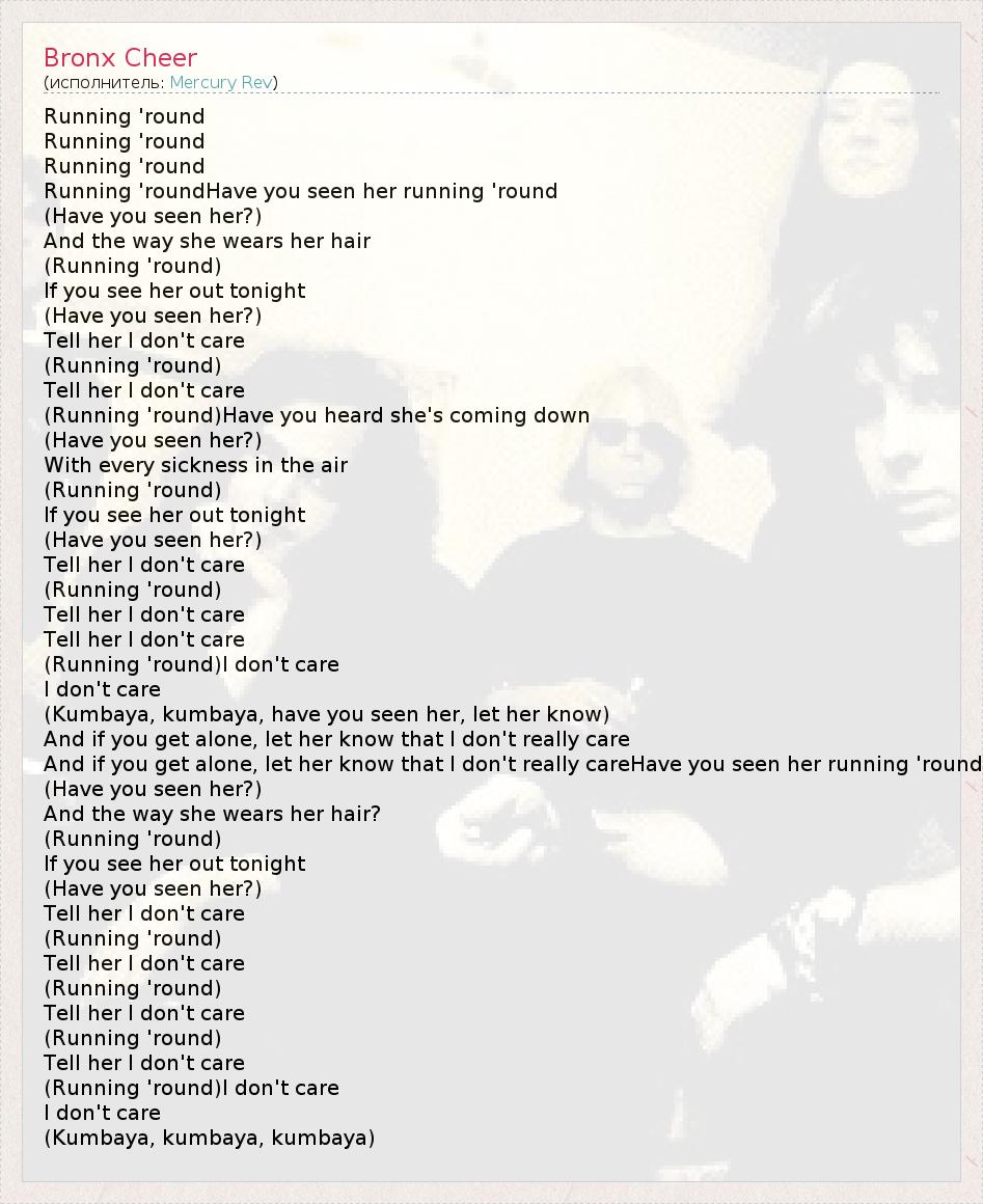 And if you get alone, let her know that I don't really careHave you seen her running 'round