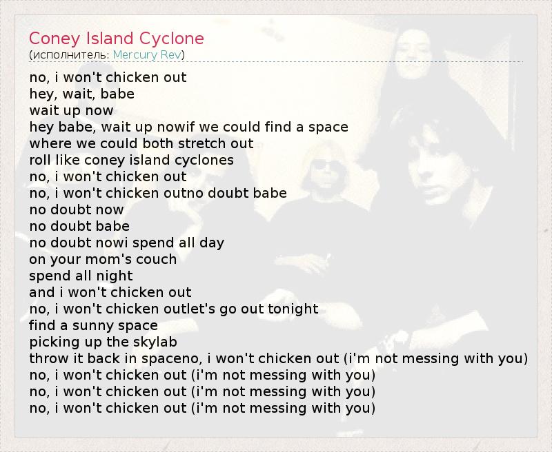 А как ты думаешь, о чем песня "Coney Island Cyclone" ?