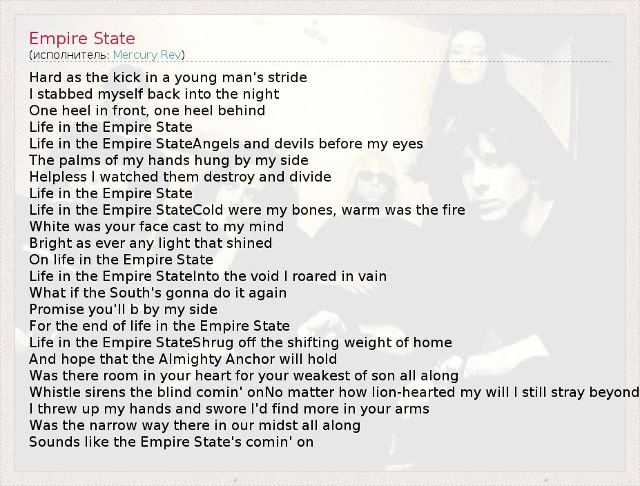 А как ты думаешь, о чем песня "Empire State" ?