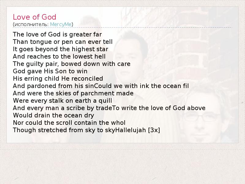 А как ты думаешь, о чем песня "Love of God" ?