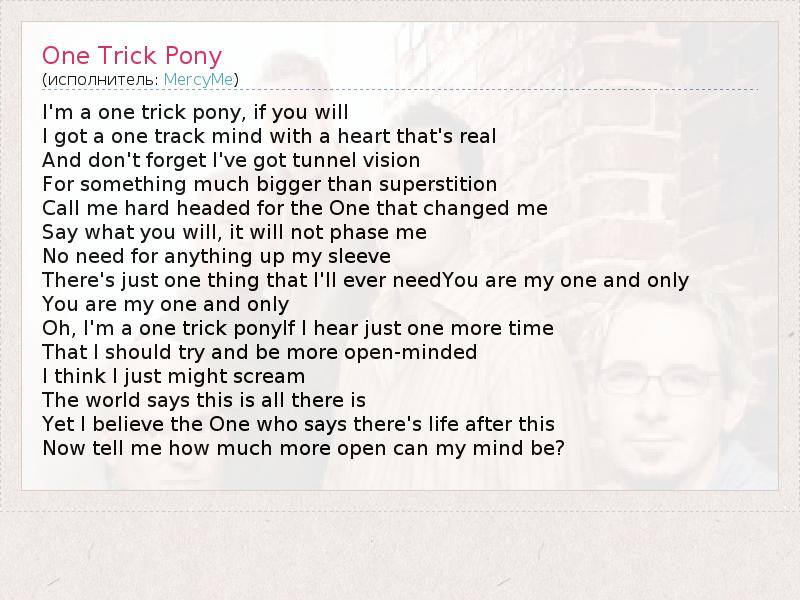А как ты думаешь, о чем песня "One Trick Pony" ?