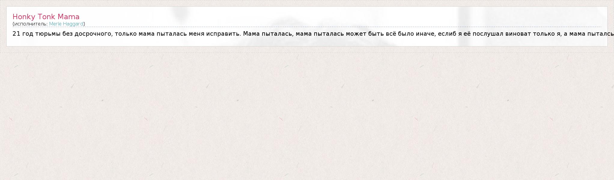 А как ты думаешь, о чем песня "Honky Tonk Mama" ?