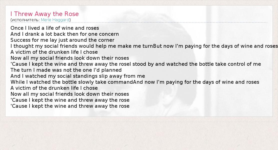 А как ты думаешь, о чем песня "I Threw Away the Rose" ?