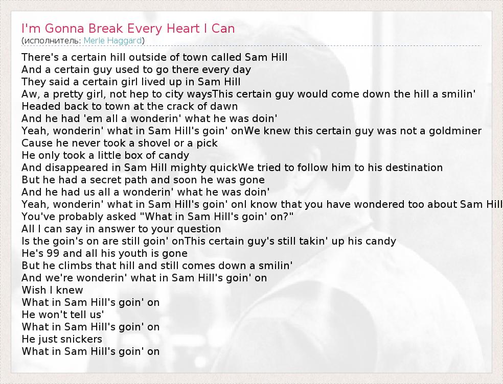 ГлавнаяИсполнителиMerle HaggardI'm Gonna Break Every Heart I Can