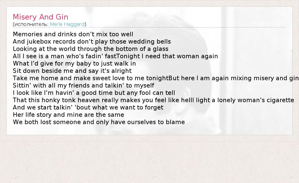 А как ты думаешь, о чем песня "Misery And Gin" ?