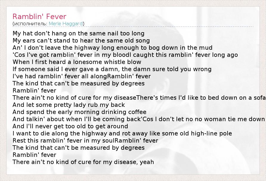 'Cos I've got ramblin' fever in my bloodI caught this ramblin' fever long ago