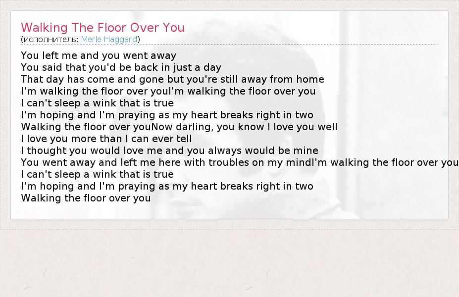 А как ты думаешь, о чем песня "Walking The Floor Over You" ?