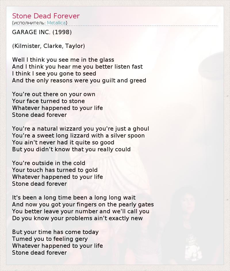 А как ты думаешь, о чем песня "Stone Dead Forever" ?