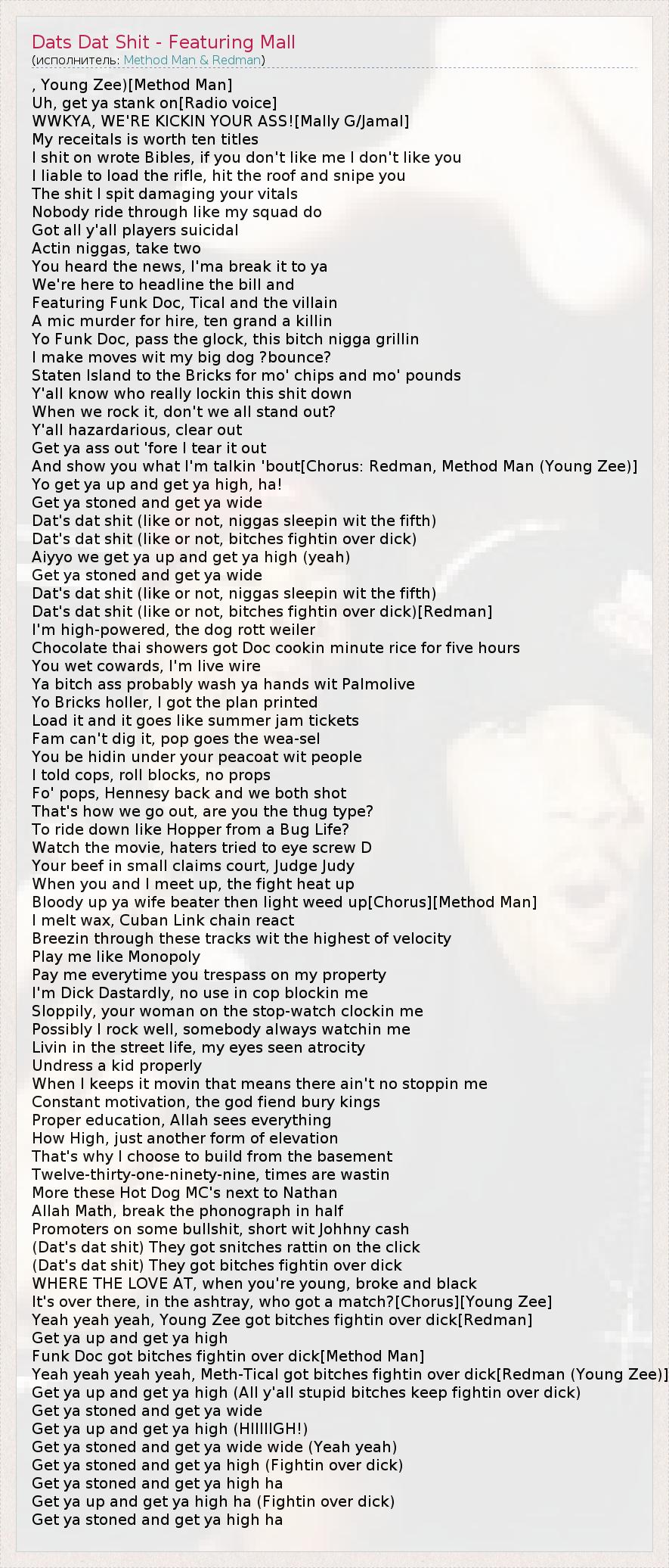 ГлавнаяИсполнителиMethod Man & RedmanDats Dat Shit - Featuring Mall