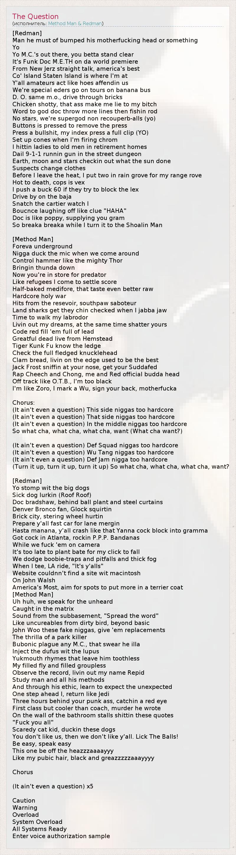 Это интересно:Когда совместно работают Redman и Method Man из пятимиллионной братии МС's рэпа, получится не средний дуэт, не супер-рэп-бомба, из этого получится самый настоящий "Blackout!". С релизом вероятно самого ожидаемого альбома, Def Jam открыла "dynamic duo" ("динамичный дуэт") Method Man'а и Redman'а. Yo! Вы наверняка вспомнили такую лажу,... продолжение