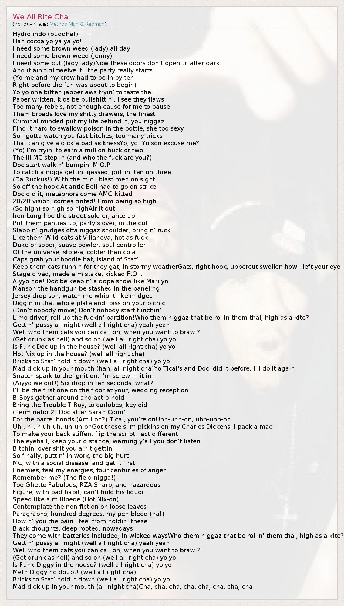 А как ты думаешь, о чем песня "We All Rite Cha" ?
