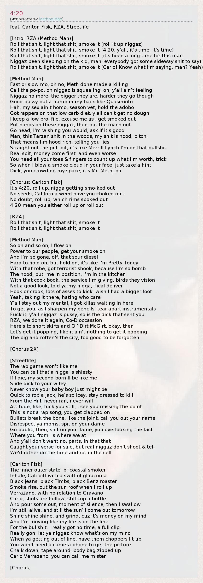 It's 4:20, roll up, nigga getting smo-ked out