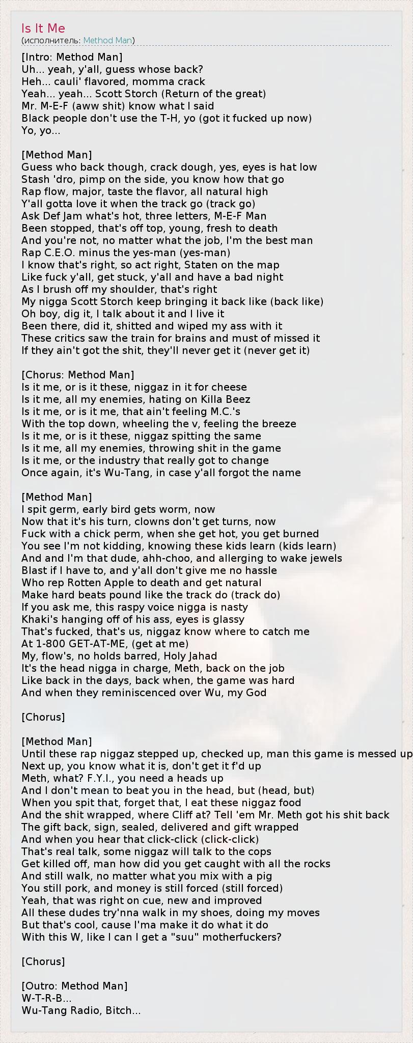 Это интересно:Участник группы Wu-Tang Clan, которая была флагманом хип-хоп музыки в начале 90-х. Начал сольную карьеру в 1994 году альбомом Tical, наделавшим много шума сразу после выхода. Результатом стала статуэтка Grammy за записанную совместно с Mary J. Blige песню All I Need. Вышедший в 1998 году второй сольник Tical 2000: Judgement Day лишь закрепил успех Meth. Рэппер был одной из гланых звезд прошедшего десятилетия, отметившись... продолжение