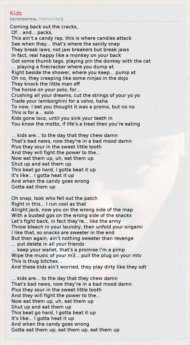 Это интересно:Участник группы Wu-Tang Clan, которая была флагманом хип-хоп музыки в начале 90-х. Начал сольную карьеру в 1994 году альбомом Tical, наделавшим много шума сразу после выхода. Результатом стала статуэтка Grammy за записанную совместно с Mary J. Blige песню All I Need. Вышедший в 1998 году второй сольник Tical 2000: Judgement Day лишь закрепил успех Meth. Рэппер был одной из гланых звезд прошедшего десятилетия, отметившись... продолжение