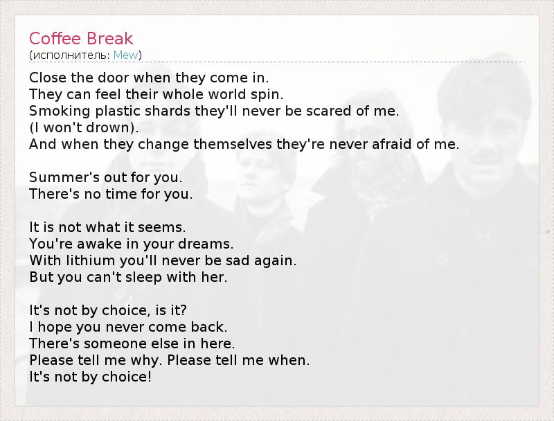 А как ты думаешь, о чем песня "Coffee Break" ?