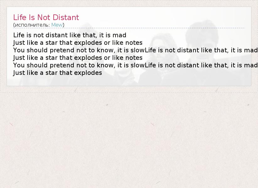 А как ты думаешь, о чем песня "Life Is Not Distant" ?