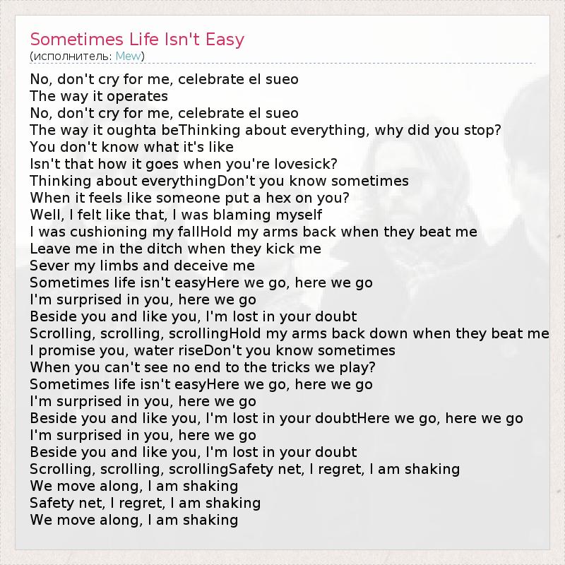 А как ты думаешь, о чем песня "Sometimes Life Isn't Easy" ?