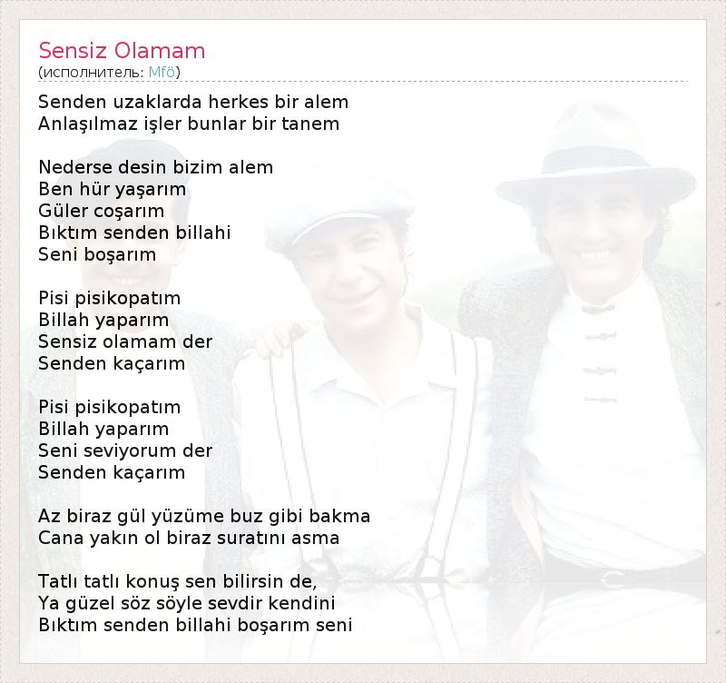 А как ты думаешь, о чем песня "Sensiz Olamam" ?
