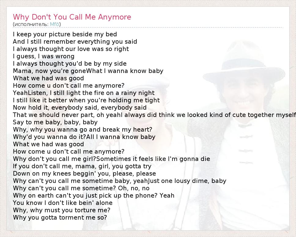 А как ты думаешь, о чем песня "Why Don't You Call Me Anymore" ?