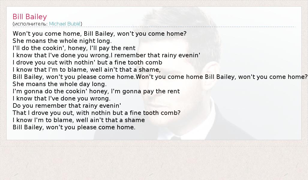 А как ты думаешь, о чем песня "Bill Bailey" ?
