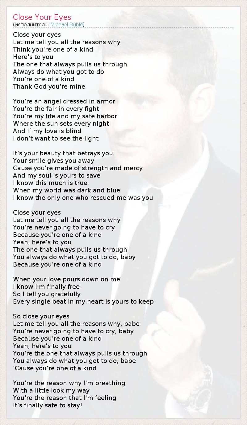 А как ты думаешь, о чем песня "Close Your Eyes" ?