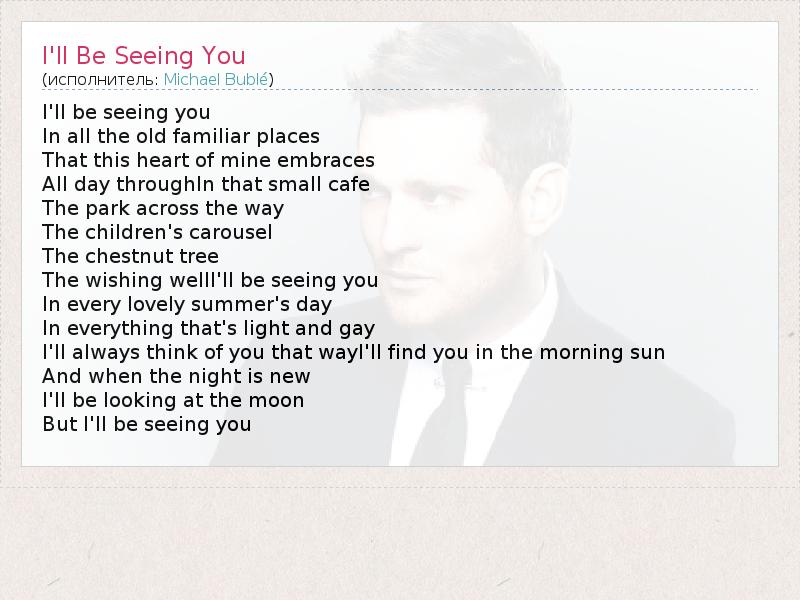 А как ты думаешь, о чем песня "I'll Be Seeing You" ?