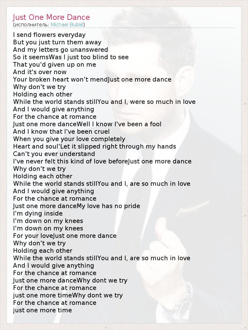 А как ты думаешь, о чем песня "Just One More Dance" ?