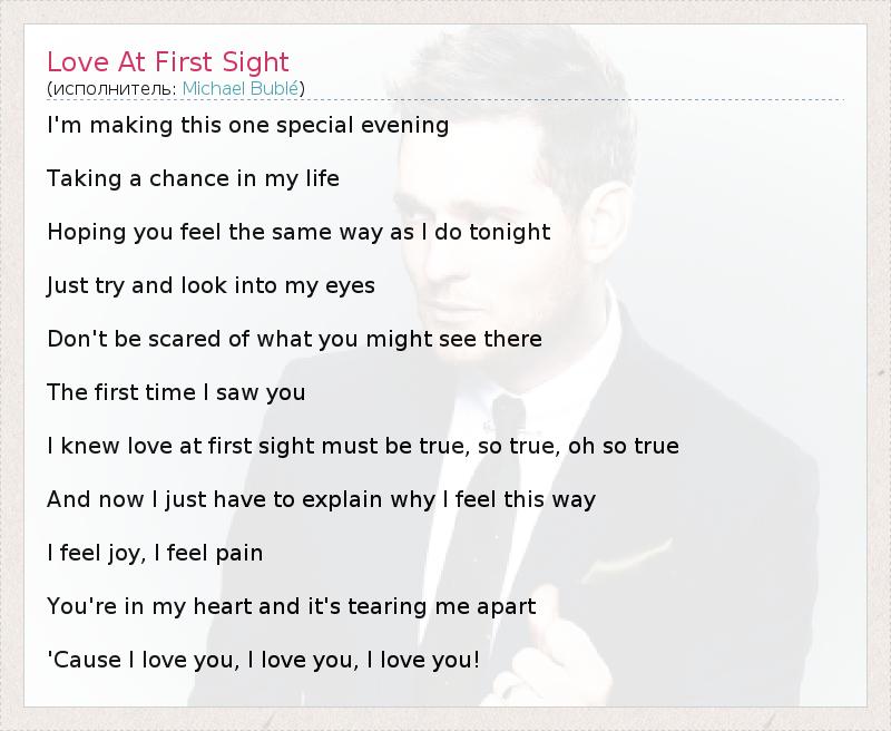 А как ты думаешь, о чем песня "Love At First Sight" ?