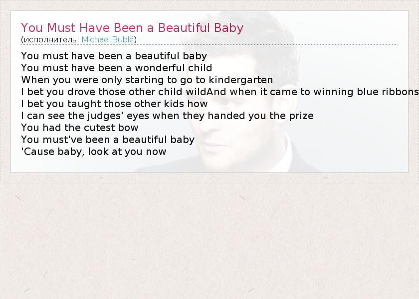 ГлавнаяИсполнителиMichael BubléYou Must Have Been a Beautiful Baby