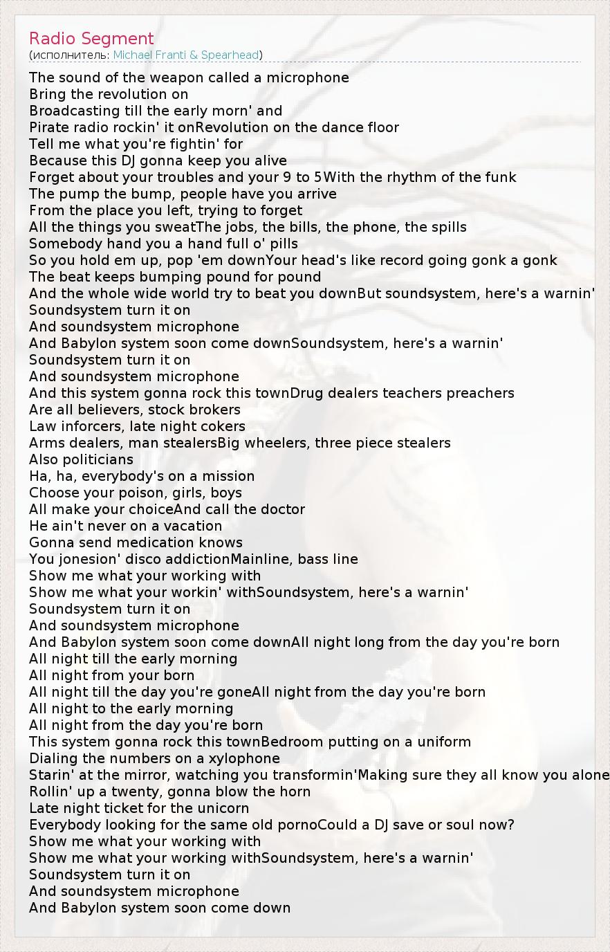 А как ты думаешь, о чем песня "Radio Segment" ?