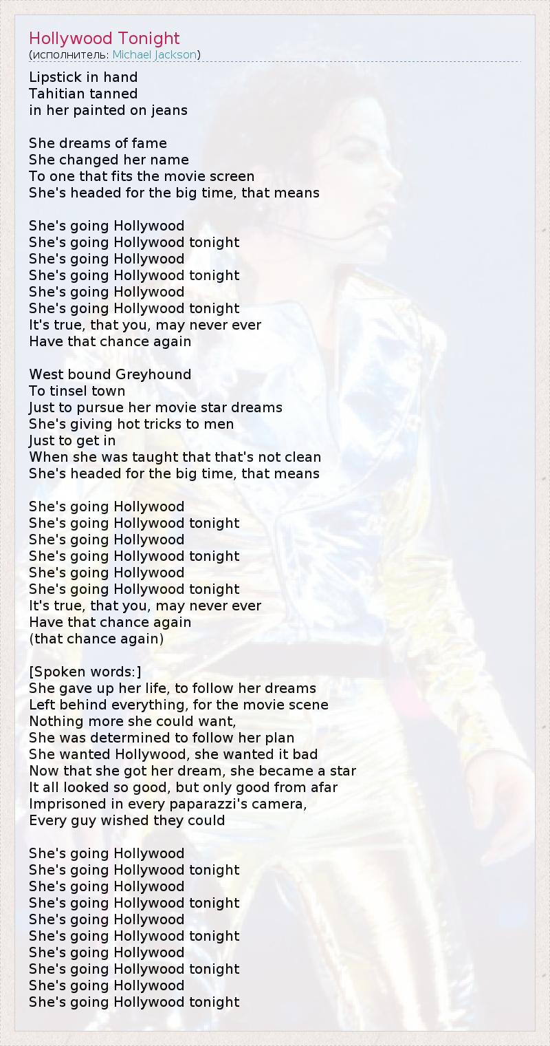 А как ты думаешь, о чем песня "Hollywood Tonight" ?