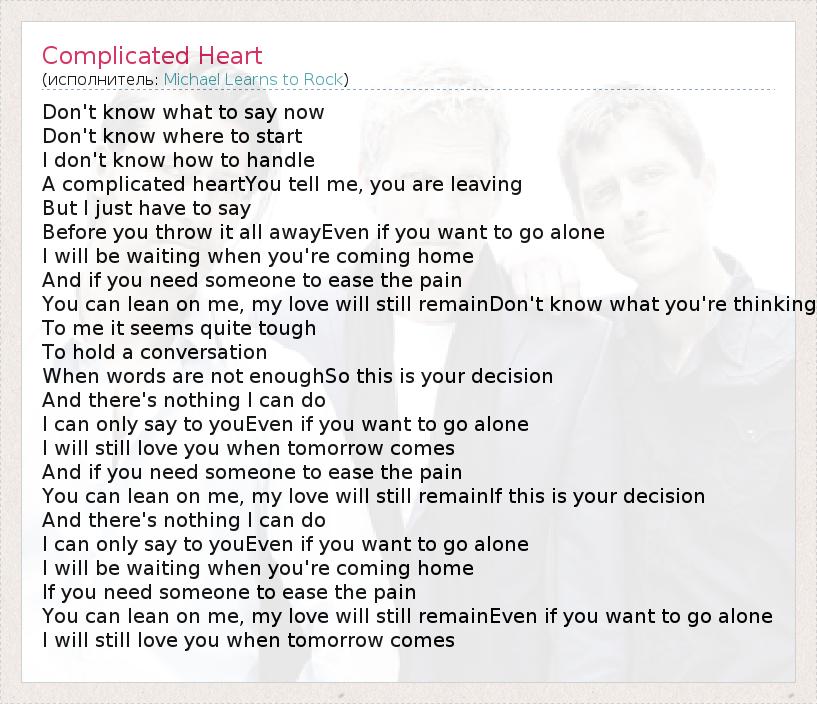А как ты думаешь, о чем песня "Complicated Heart" ?
