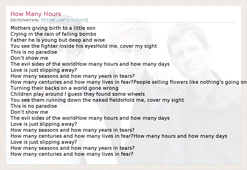 А как ты думаешь, о чем песня "How Many Hours" ?