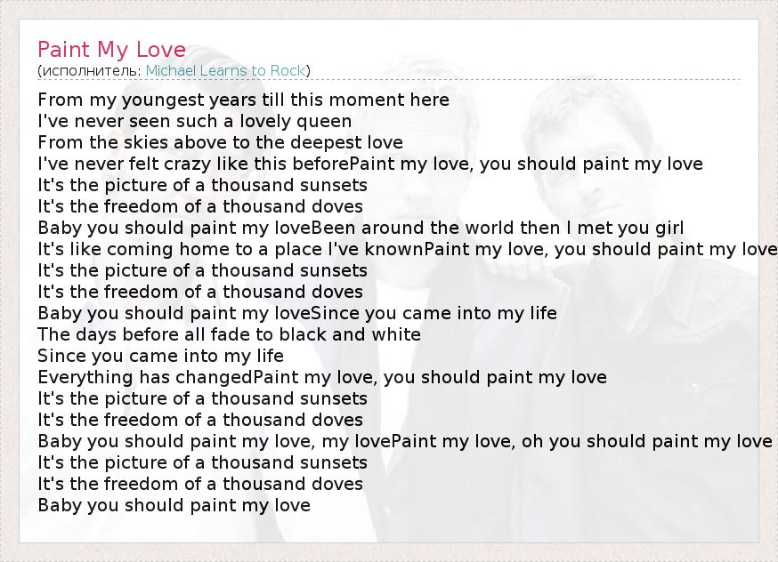 А как ты думаешь, о чем песня "Paint My Love" ?