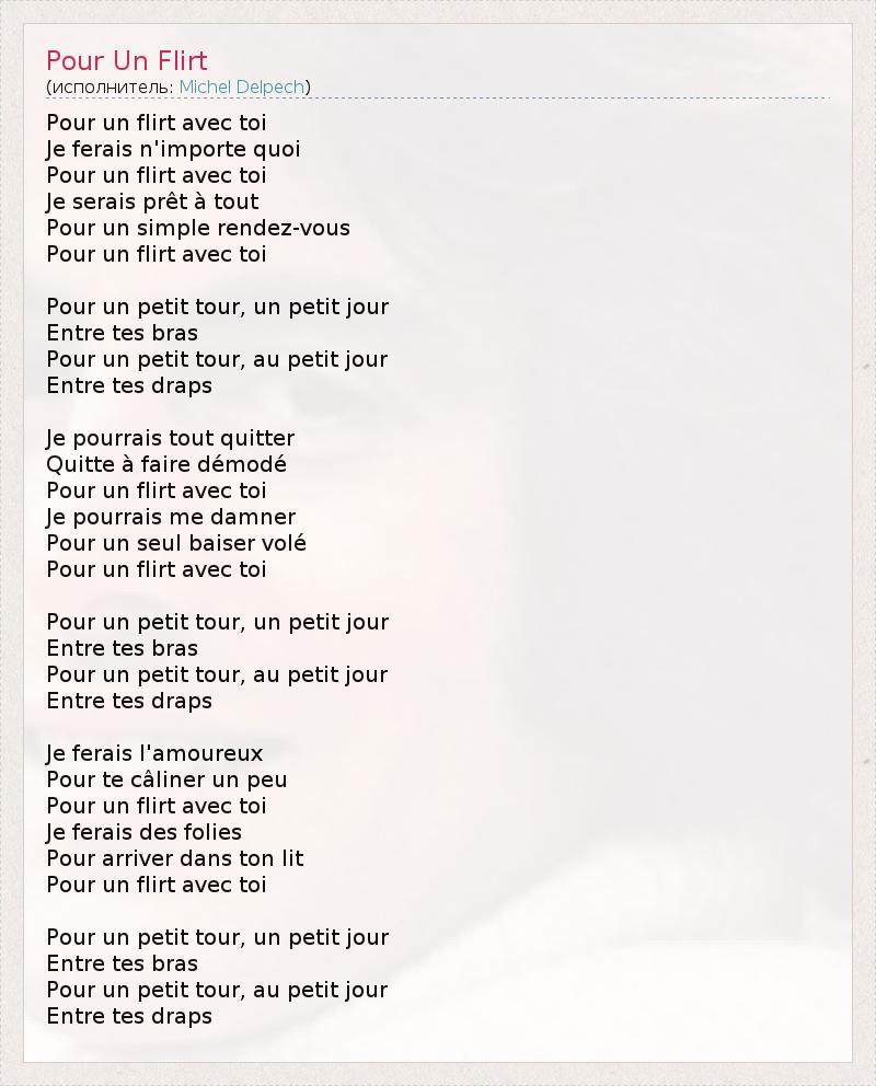 А как ты думаешь, о чем песня "Pour Un Flirt" ?