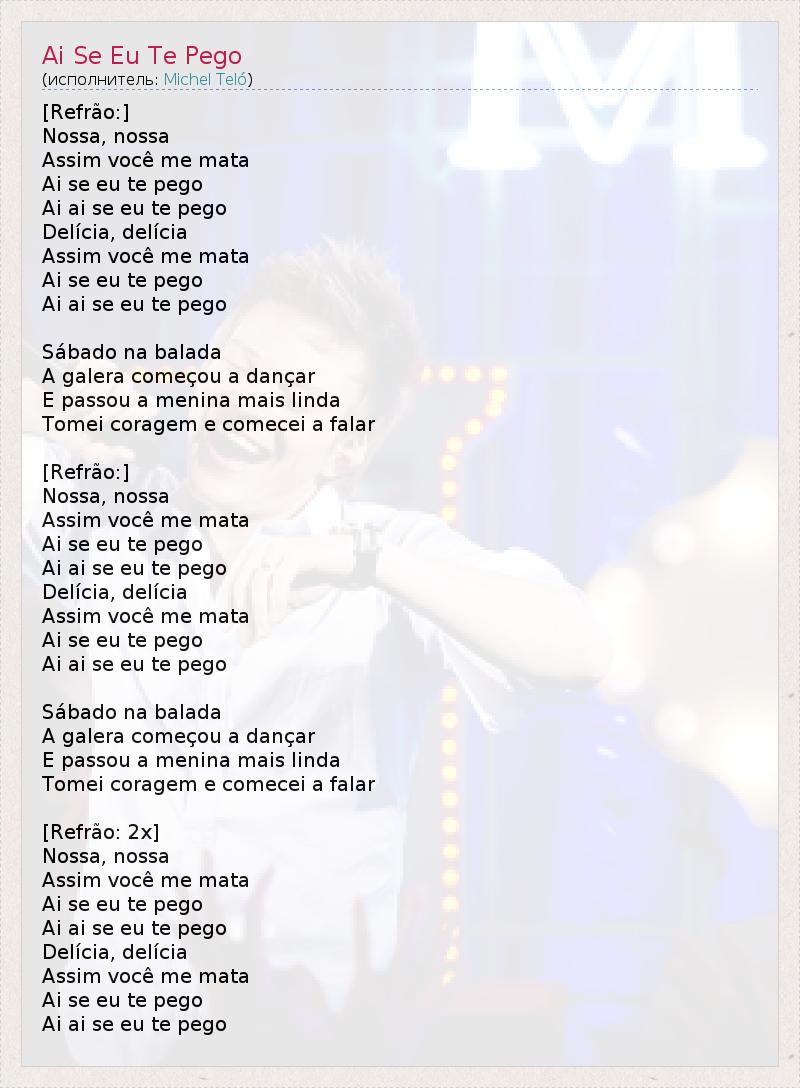 А как ты думаешь, о чем песня "Ai Se Eu Te Pego" ?