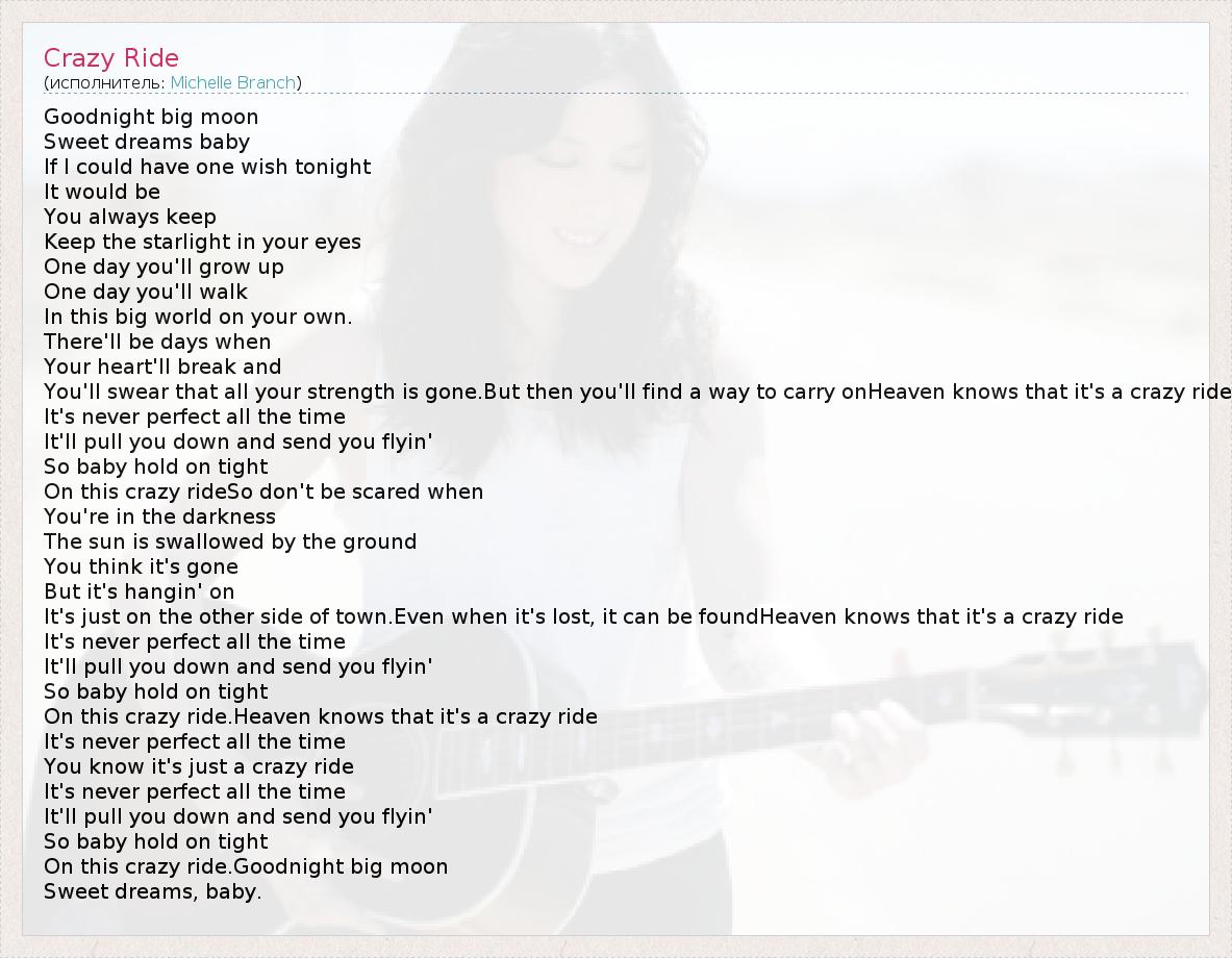 А как ты думаешь, о чем песня "Crazy Ride" ?