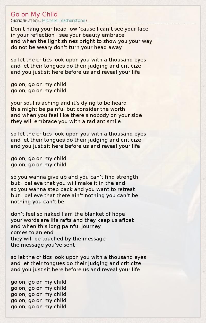 А как ты думаешь, о чем песня "Go on My Child" ?