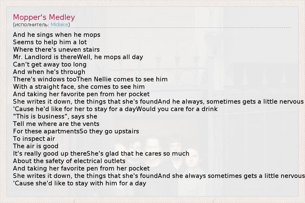 А как ты думаешь, о чем песня "Mopper's Medley" ?