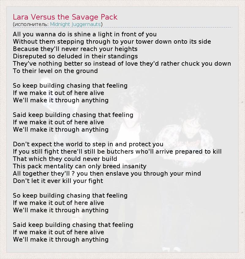 А как ты думаешь, о чем песня "Lara Versus the Savage Pack" ?