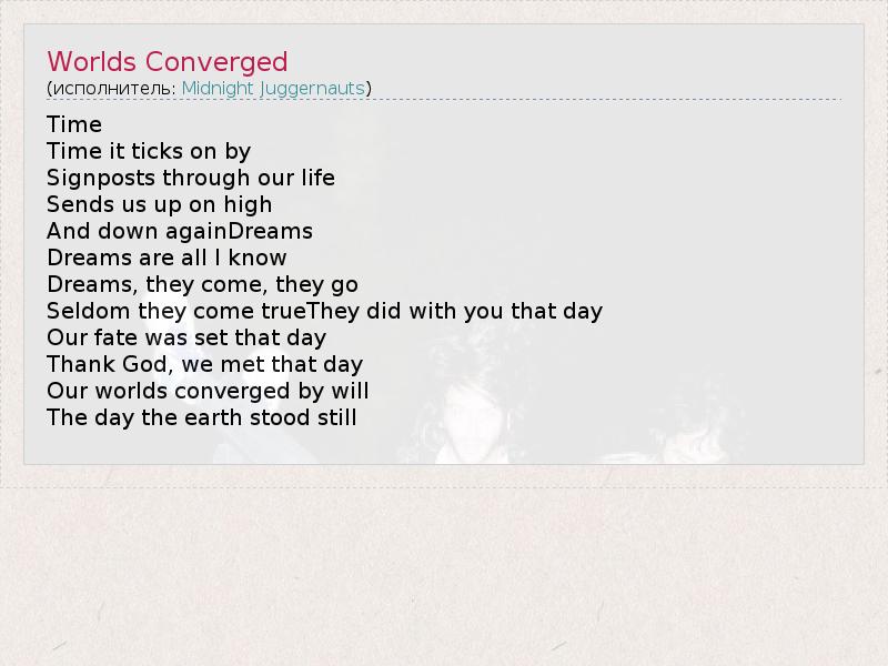А как ты думаешь, о чем песня "Worlds Converged" ?