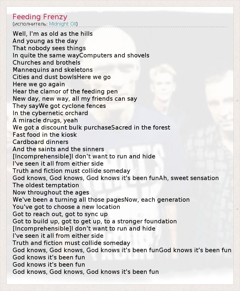 А как ты думаешь, о чем песня "Feeding Frenzy" ?