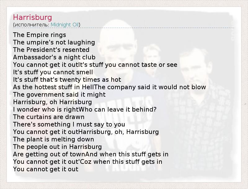 А как ты думаешь, о чем песня "Harrisburg" ?