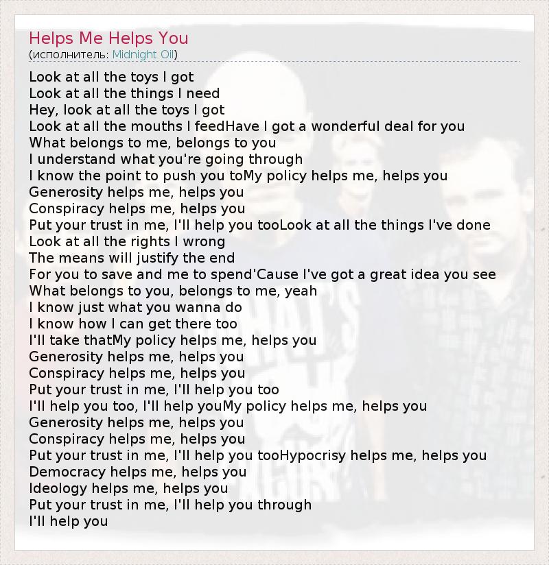 А как ты думаешь, о чем песня "Helps Me Helps You" ?