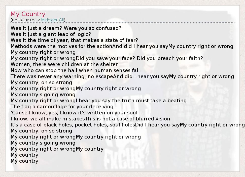 А как ты думаешь, о чем песня "My Country" ?