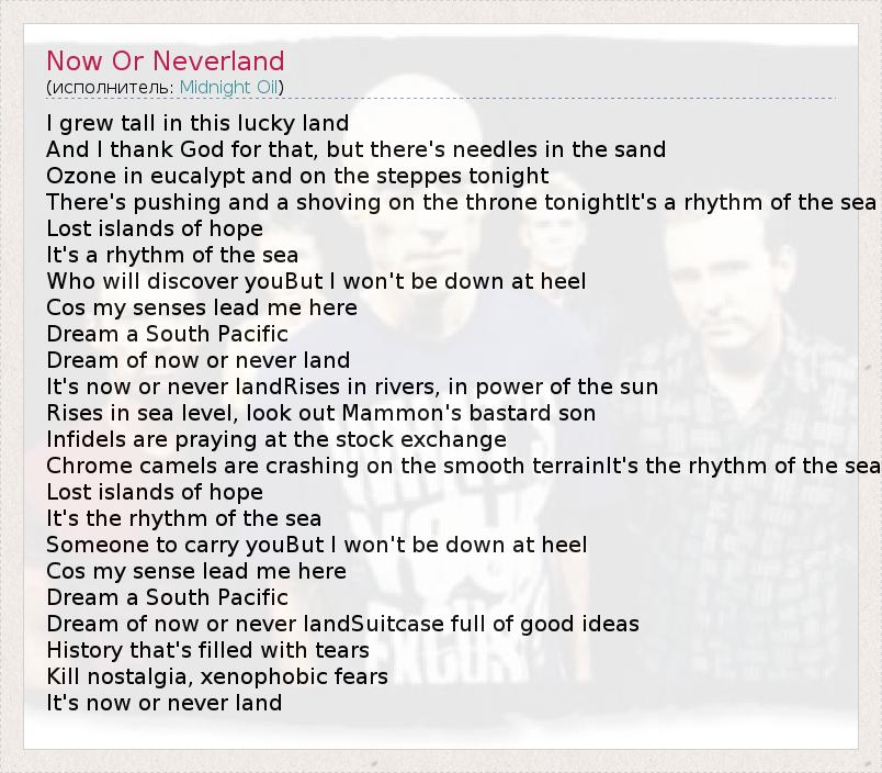 А как ты думаешь, о чем песня "Now Or Neverland" ?